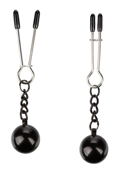 Includes 2 fully adjustable multi-use clamps. Unique tweezer-style design with fully adjustable sliding ring. Soft, comfortable pads. Heavy-duty metal. Non-tarnishing, nickel-free. Added weight to increase stimulation.